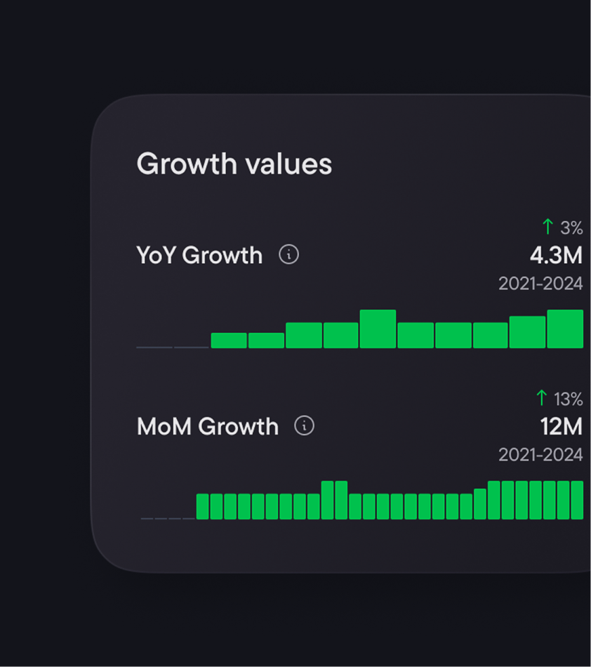 The pulse of iGaming at your fingertips. Our AI-powered metric analyzes billions of search queries to give you real-time insights into market size and brand performance, with up to 95% accuracy for established brands.