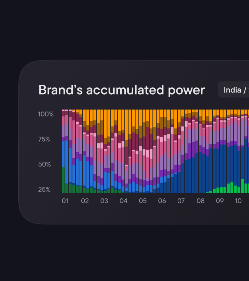 Measure your brand’s share of consumer interest. BAP offers a percentage-based view of your market presence, helping you understand relative brand strength and audience engagement.