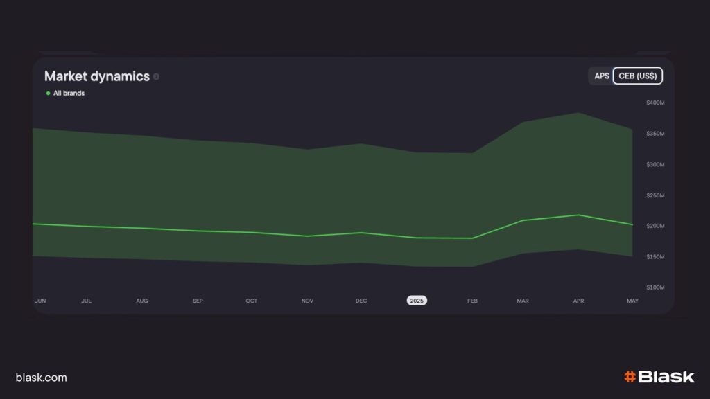 Blask’s real-time dashboards surface those signals in five interlocking metrics: the All-Brands table that captures every competitor on the map, Brand’s Accumulated Power (BAP), Blask Index, Acquisition Power Score (APS) and Competitive Earning Baseline (CEB).