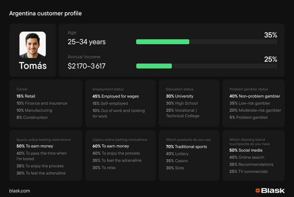 Blask’s customer profile reveals a rather young user base – 65% of iGaming players are under 35. And their primary motivation is earning money: 50% of sports bettors and 60% of casino players cite it first.