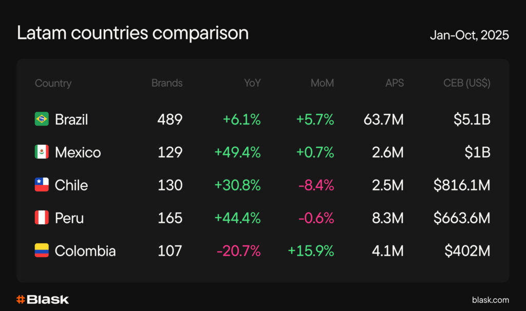Inside LATAM, Brazil is a consistent No. 1; Mexico, Chile, Peru and Colombia follow.