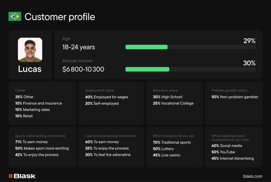 The iGaming customer here is young and pragmatically value-seeking. Blask’s Customer Profile shows: