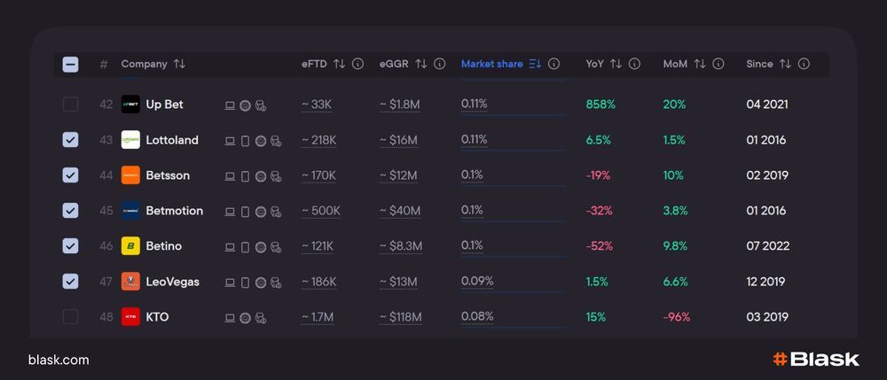 💡 Read more: How to track your nearest iGaming competitors with Blask?