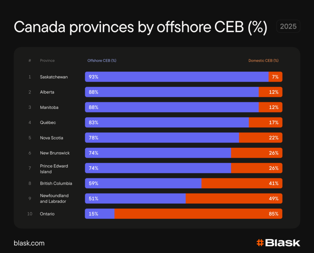 Ontario showed that open competition can shift the onshore-offshore balance decisively. Alberta, with a market at approximately $1.8B by CEB in 2025, will be the second province to operate on a competitive licensing mode.