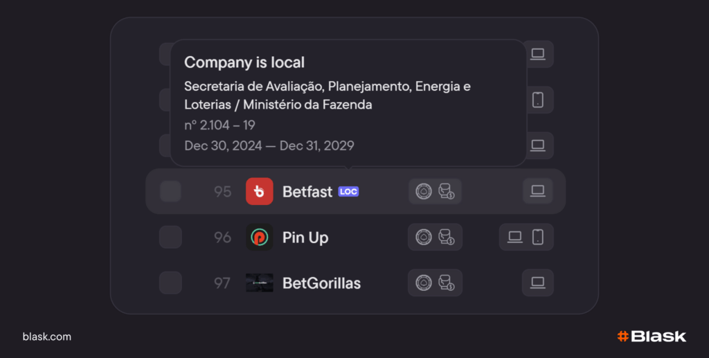 🚀 To help operators navigate regulated markets more effectively, Blask now segments iGaming brands into local and international categories. Brands are labeled directly in market lists, and users can compare key metrics like APS and CEB across both segments. This gives operators a clearer understanding of market structure, compliance dynamics, and growth opportunities.