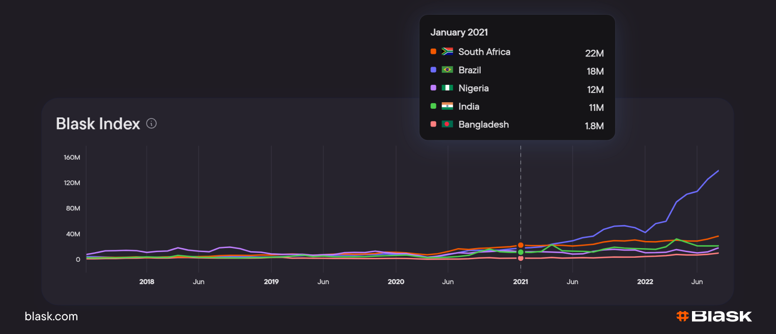 💡 Blask Index for countries gives you a bird’s-eye view of overall market sentiment, updated in real time.