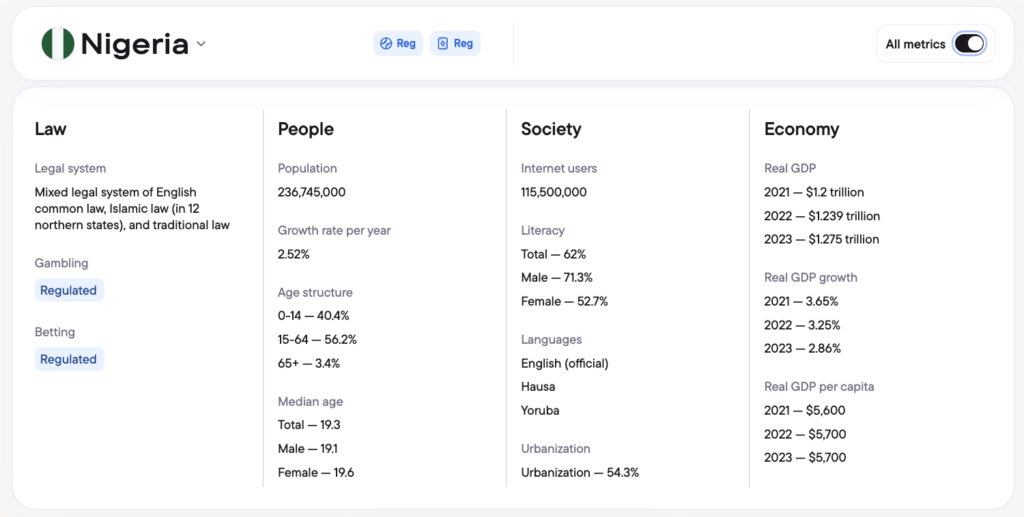 Nigeria’s 184 active brands are competing for a player base that is growing faster than any other market at comparable scale. That combination — high acquisition growth, strong structural tailwinds, still-fragmented competition — is rare.