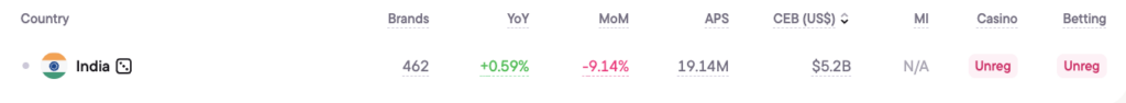 India lacks a federal regulatory framework for online gambling. Several states operate their own regimes. A national framework, if it emerges in 2026 or 2027, would likely produce a demand surge comparable to Brazil’s.