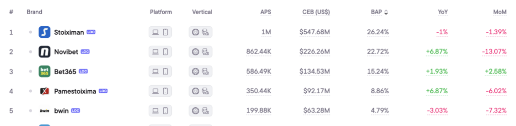 The top brand, Stoiximan, is a local operator that has held market leadership since Greece’s market formalized. According to iGaming Business, Greece has developed into a “thriving European iGaming hub” — a market combining a functional regulatory framework with strong demand driven by sports betting culture.