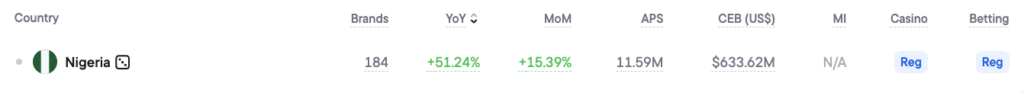 For context, Nigeria’s total gambling market has been projected at $3.63 billion for 2025 when accounting for the full market including informal operators. Blask’s CEB measures the segment where brands generate trackable consumer demand — the credible floor of regulated activity.