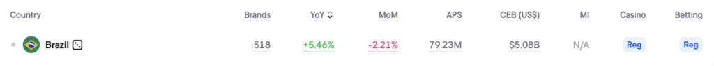 Q1 2026 CEB reached $1.73B — compared to $382M in Q1 2025. That’s a 353% year-over-year gain in the first quarter alone. Most markets that double in a year spend the next 12 months digesting. The Philippines is still accelerating. The catalyst is ongoing PAGCOR enforcement: every offshore operator removed from the market transfers its player base to licensed brands, and that process isn’t finished. The market to watch most closely in 2026. - Brazil: looking for the floor.