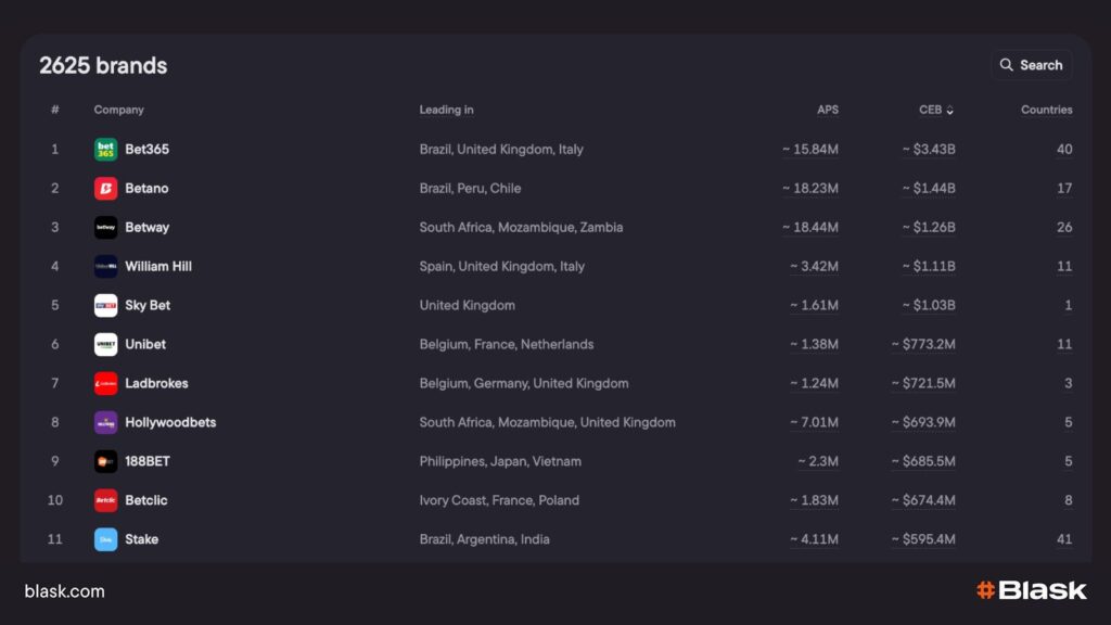 Blask Index icalculated every hour for both an entire country and each individual brand or game. It converts raw Google-query volume into an instant proxy for demand, a method that academic studies show predicts future market share with 83-96 % accuracy.