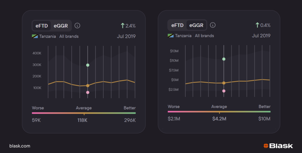 Blask does not have access to the financial data of these brands; however, we possess gigabytes of reports, access to experts in the iGaming industry, and an AI model that calculates eGGR and eFTD based on Blask Index and market dynamics.