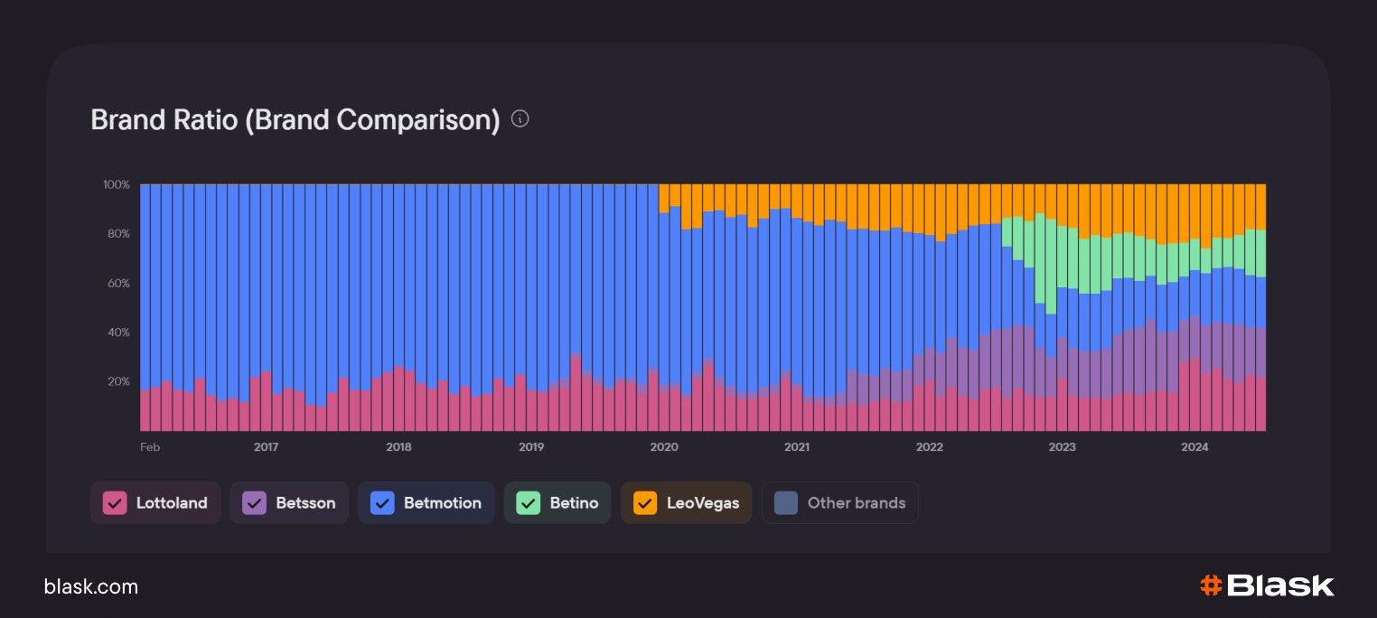 For example, if you are Betmotion, the 45th brand in the Brazilian iGaming vertical, Blask will help you monitor Lottoland, Betsson, Betino, and LeoVegas — your closest rivals that you need to outmaneuver at every turn.