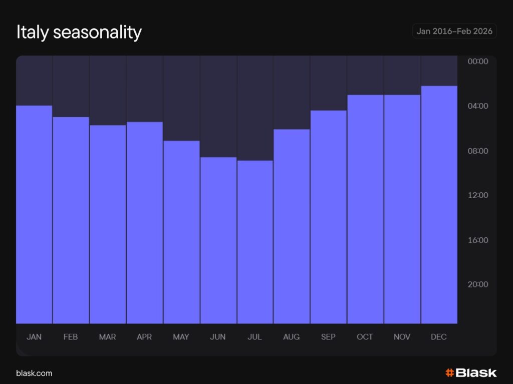 Italy’s peak demand sits firmly between September and December, and the structure behind it is mechanical rather than coincidental.
