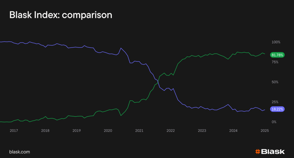 Let me start with a simple truth: the Blask Index is a benchmark of user interest — not a P&L statement. At least, not always. When one market’s line rises above another, it means more people are thinking about, searching for, or linking to brands there. Money might follow, but not automatically. That distinction matters if you’re allocating budgets or judging market health.
