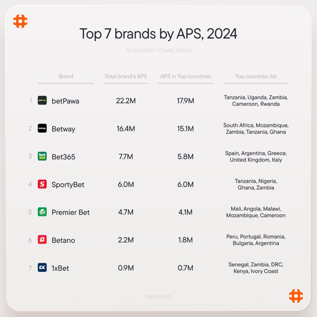 📈 According to a Blask study, betPawa has clinched the top spot with an overall Acquisition Power Score (APS) of 22.24 million.