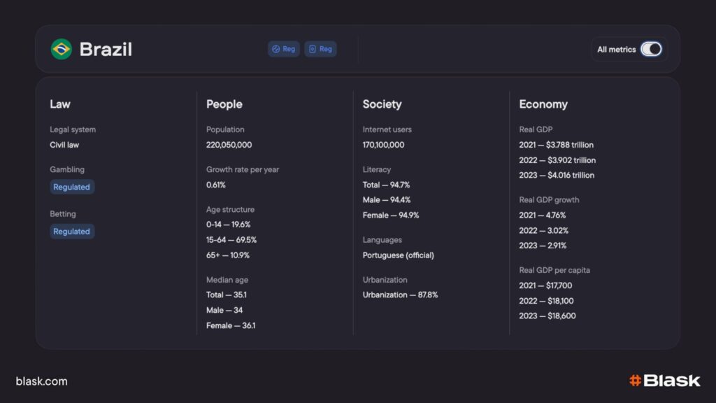 Blask’s Customer Profile turns 80 000 survey interviews, open-web behaviour and regulatory datasets into nine hard metrics for every national audience: age band, income range, education, career, preferred product, sports-betting motive, casino-motive, first brand-touch-point and problem-gambling risk.