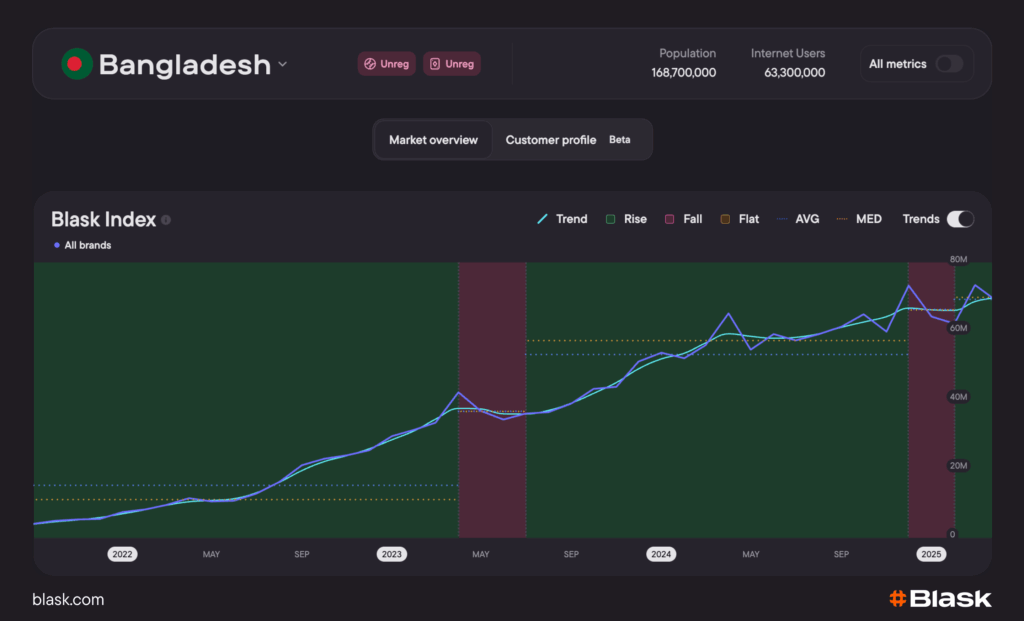 While others are still using 6-month-old Excel reports, leading iGaming companies are making million-dollar decisions with Blask’s real-time AI insights. From spotting the next Aviator in Brazil to uncovering hidden opportunities in emerging markets like Bangladesh, we’re transforming the way iGaming operators navigate their expansion. Here’s how we’re turning the industry from a game of chance into a game of strategy.