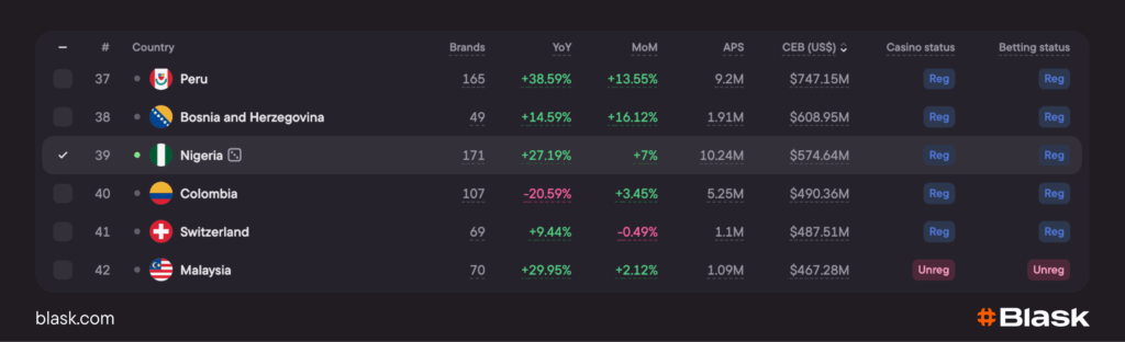 Another critical question to consider is whether a market is worth entering at all. Take Nigeria, for example, a market that everyone seems to talk about due to its high volume of active players. On the surface, it seems promising, filled with potential customers and plenty of attention. But when you dig into the data, a different story emerges. The Nigerian market, despite its size and player volume, isn’t actually growing. In fact, it’s stagnating.