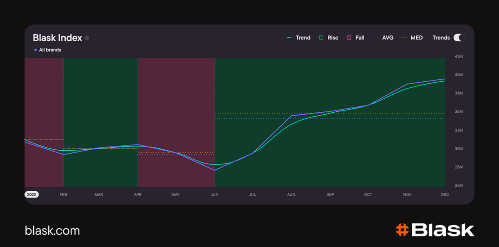 Blask Index is a real-time, dynamic metric that tracks iGaming market volume and brand share, updated hourly, powered by analysis of search query data.