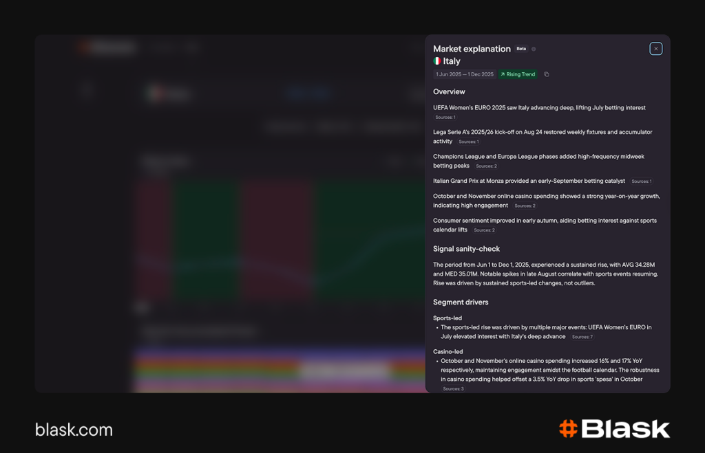 Blask is built to answer a simple question fast: where is iGaming demand moving next? Now we’re adding the missing layer: why it moved.