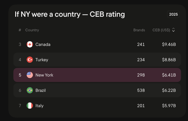 The composition of New York’s top 10 brands illustrates the divide with unusual clarity.