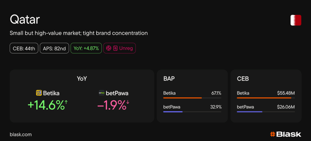 - betPawa: ~10.7% BAP | ~$21.3 M CEB | +71% YoY Other brands (Roobet, BC.Game) showing +70-90% YoY; innovation, crypto & high-risk appetite thrive here.